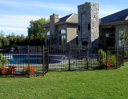 Elite residential grade aluminum fencing is an excellent choice for both security and protection. Residential designs, including the EFS-15 style fence, offer a beautiful decoration for your property without having to compromise on security. The Elite EFS-15 staggered spear top ornamental aluminum fences are constructed of 1-1/8” x 1” rails, 5/8” x 5/8” pickets, and use 2” x 2” or 2-1/2” x 2-1/2” fence posts. The fence’s horizontal rails have been engineered for a unique blend of both strength and style.